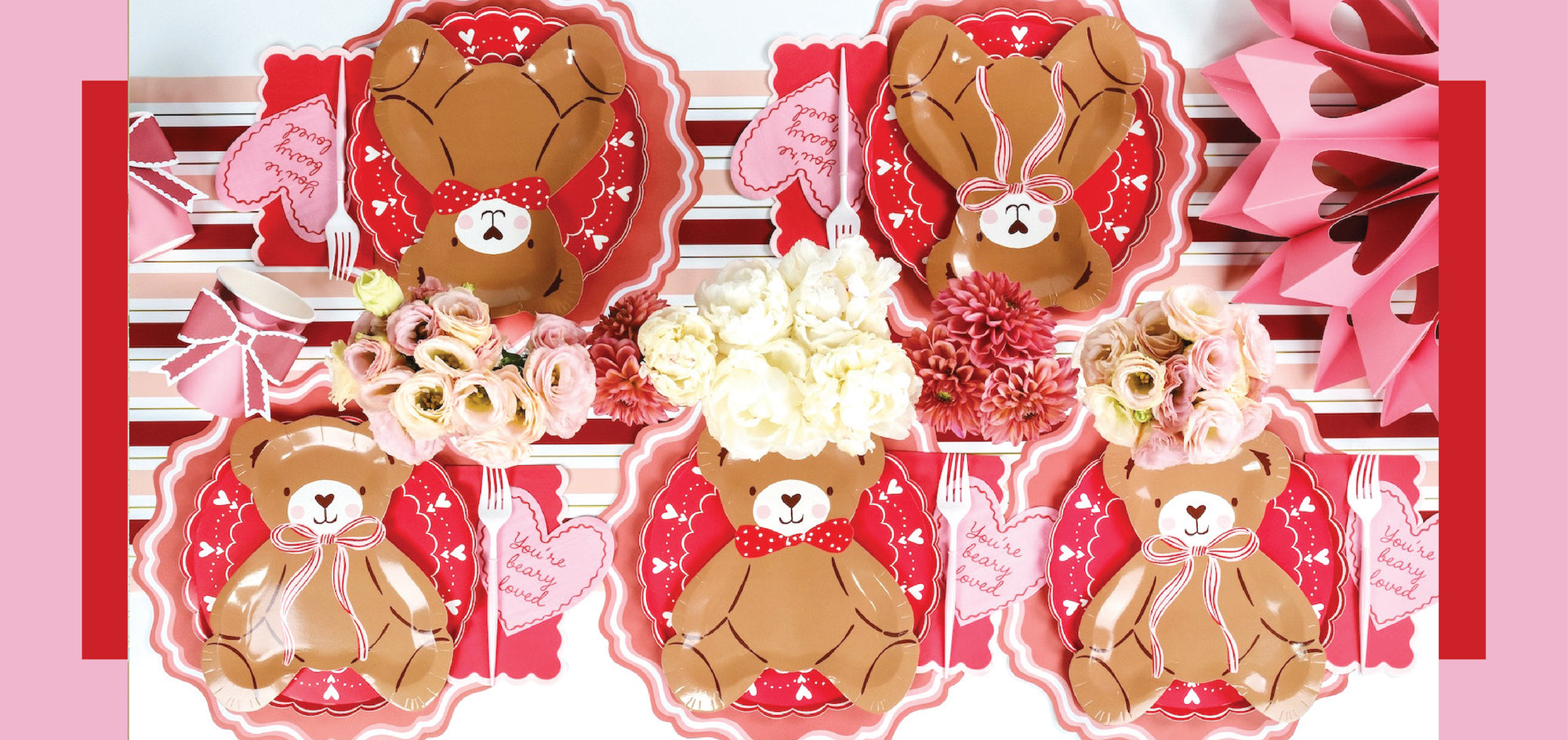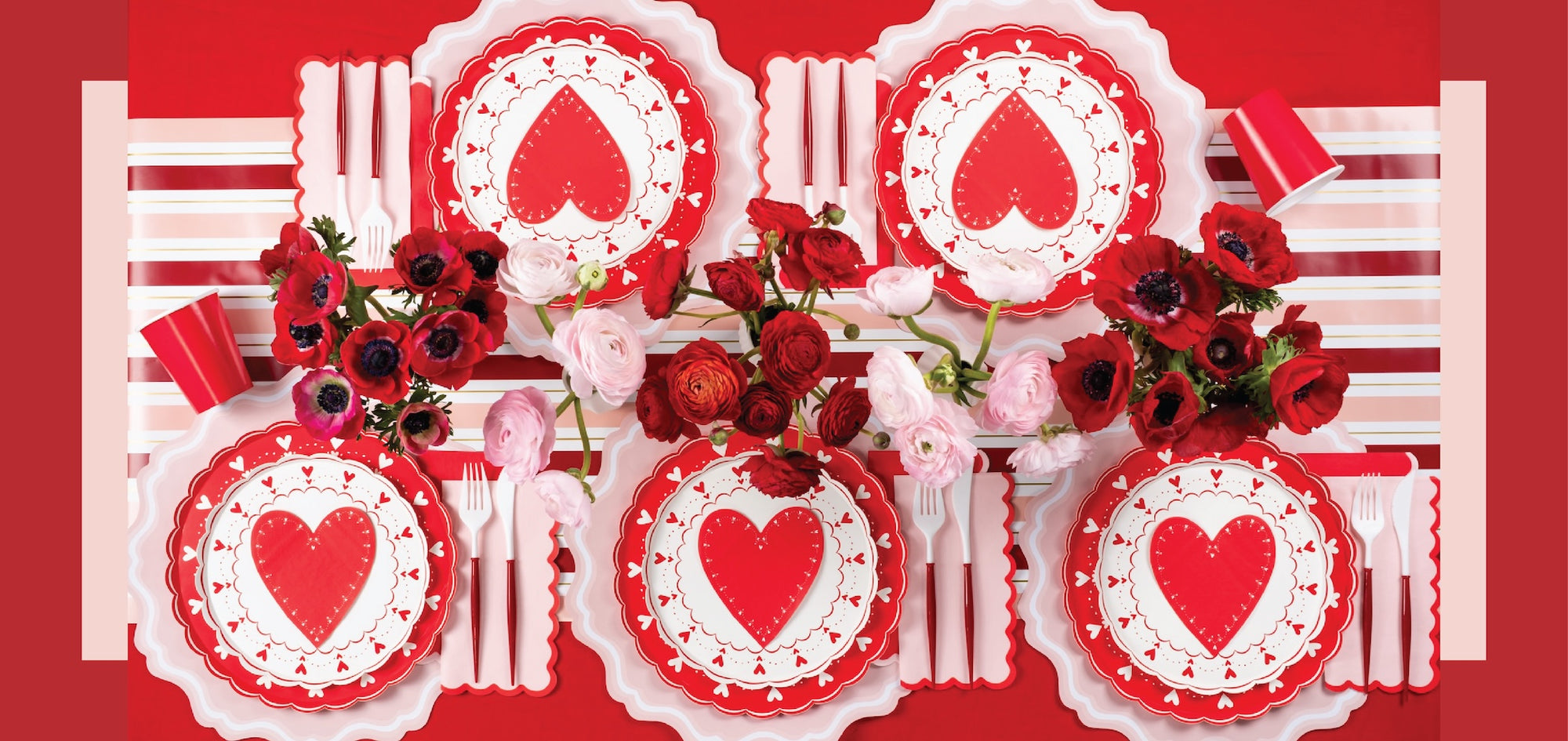 Pink & Red Striped Paper Table Runner