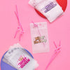 16 pouches total: 2 pcs per design included  comes with 16 pink twirly straws