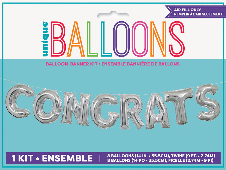 While decorating to congratulate someone this foil balloon banner in silver color is the perfect addition.