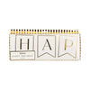 • Gold foil and cream “HAPPY BIRTHDAY” paper banner