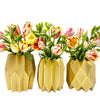 These paper vase wraps are a great way to dress up any table, bookshelf, or desk. Just simply wrap these paper flower vases around any small container (a can, cut a water bottle, stemless wine glass, etc.).