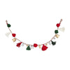 Yarn poms, tassels, jingle bells and tin bells on twisted cotton rope.