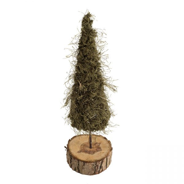 Boho Inspired 16″ Furry Tabletop Pine Tree With Rustic Log Base