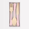 Who says disposable cutlery can't make a statement? Forget the ordinary, our wooden cutlery sets are a fun reimagining of classic silverware, blending practicality with style. Designed with a nod to elegance, they are ideal for picnics, garden parties, princess parties, fairy parties, BBQs, camping adventures, or anytime you're skipping the sink. This flatware set features pink handles to effortlessly complement the rest of your tableware.