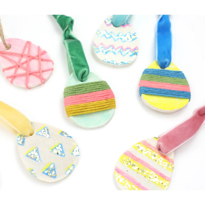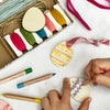 A creative and imaginative box set to adorn salt dough decorations in time for Spring & Easter celebrations. The salt dough recipe is included in this kit & requires the addition of plain flour, salt & water. Perfect for three upwards, this box kit contains an egg template to cut around, then watercolour pencils, paintbrush, sharpener, eco glitter glue, velvet ribbons, twine & wool for decorations purposes. Paint the decorations with the watercolour pencils to achieve your desired pattern & effect. Once painted, decorate with the eco glitter glue provided. Wrap wool around the decorations to create patterns or texture, then hang with the ribbon or twine. In a bid to banish plastic tat from our homes, all Cotton Twist products are lovingly made by hand and all components are as good as we can possibly make them. MATERIALS: Box, plywood egg template, twine, velvet ribbon, wool, watercolour pencils, paintbrush, sharpener, eco glitter glue, instruction card. UKCA/UKNI/CE tested