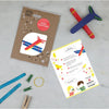 Perfect for three years & upwards, construct a model aeroplane using the cut out, peg, lolly sticks, & rubber bands. Whoosh it through the air & launch your passengers into another dimension. Cotton Twist craft activities are often gifted as party bag or stocking fillers. In a bid to banish plastic from our homes, Cotton Twist products are lovingly assembled by hand, & all components are as good as we can possibly make them. MATERIAL - wooden peg, lollipop sticks, elastic bands, mini pegs, glue dots, aeroplane cut out DIMENSIONS - a recyclable kraft envelope measuring 16.5cm by 11.5cm together with an A6 printed instruction card