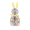A set of three honeycomb paper bunnies in three sizes, each with a different Liberty floral design