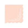 Elevate your spring tablescape with our softly scalloped cocktail napkins finished with an intricate corner bouquet, petite blossoms and leafy sprigs rendered in fine ivory linework. The artwork nods to vintage china yet feels fresh and airy, with delicate negative space that looks refined up close and romantic from across the table. Available in three coordinating hues blush pink, light blue, and sage, each color sets a gentle pastel backdrop that lets the botanical illustration shine.