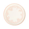 Give your table a refined, romantic layer with our Floral Elegance Small Plates. A softly scalloped rim frames a delicate botanical wreath petite blossoms and leafy sprigs rendered in fine, ivory linework. The illustration nods to vintage china while the airy negative space keeps the look fresh and modern. Available in blush pink, light blue, and sage, each pastel hue sets a gentle backdrop that lets the florals shine and coordinates seamlessly with the rest of the collection.