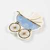 A classic for baby boy celebrations, our light-blue stroller napkins feel timeless with dainty florals and golden wheel details, darling at sip-and-see spreads and dessert tables.