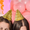 Bring the shimmer and the fun with the Packed Party Golden Girl Mini Fringe Party Hats Set! This set of 4 mini party hats is layered in gold fringe and finished with a comfy gold elastic strap, making them as easy to wear as they are eye-catching. One size fits all, and yes, they're as fabulous as they sound. Shine bright, party big, and keep it golden, girl!