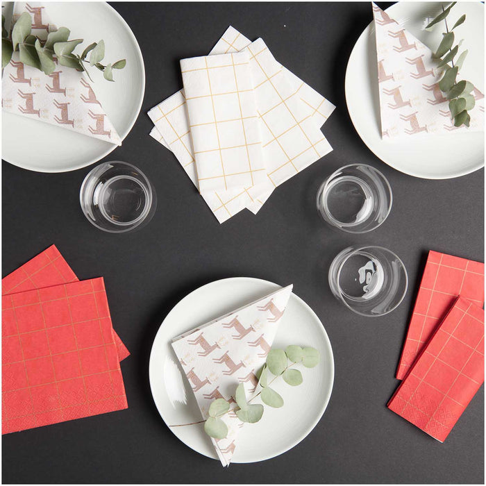 Red & Gold Grid Napkin