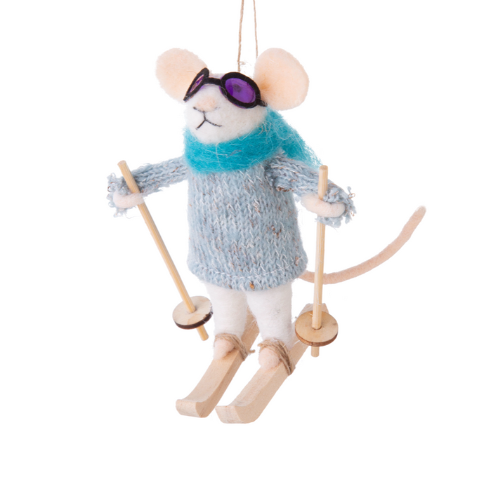 Brighten up your holiday decor with this charming Felt Mouse Skier! This adorable mouse, dressed in a sweater and scarf, adds a touch of Christmas spirit to any setting. The delightful design will bring joy to your senses and make your home feel festive!
