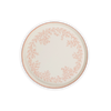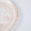 Give your table a refined, romantic layer with our Floral Elegance Small Plates. A softly scalloped rim frames a delicate botanical wreath petite blossoms and leafy sprigs rendered in fine, ivory linework. The illustration nods to vintage china while the airy negative space keeps the look fresh and modern. Available in blush pink, light blue, and sage, each pastel hue sets a gentle backdrop that lets the florals shine and coordinates seamlessly with the rest of the collection.
