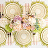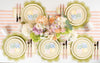 Serve springtime sweetness on our Floral Meadow Small Plates. Petite rings of buttercream, blush, sky blue, and soft melon wildflowers encircle the plate, finished with a fresh sage rim and a slim golden accent. Airy and romantic like a stroll through a blooming meadow these premium paper plates are perfect for cake, macarons, fruit, and party bites.