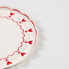 Serve up something sweet with our From the Heart Small Plates! A charming scalloped edge frames a ring of playful red hearts and dotted garlands, creating a romantic doily-inspired look. Made from premium paper, these dessert/appetizer plates are perfect for cake, cookies, and love-day bites.