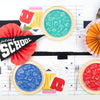 Add a pop of color and fun to any school party or back to school gathering with our School Days Icon Dessert Plates. Featuring primary colors and iconic designs in white, these plates are perfect for kids and come in a set of four different colors. Make every celebration a memorable one with these charming dessert plates!