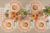 The Harmony dinner plates feature a soft gingham pattern in muted tones of pink, peach, beige, cream, and yellow, evoking the fresh and airy charm of springtime. The unique scalloped edges add a touch of elegance, making them perfect for Easter celebrations, spring gatherings or garden parties. Their warm and inviting design complements well with the rest of our Harmony collection seamlessly, and pairing them with seasonal blooms enhances the fresh, rejuvenating spirit of spring. Both practical and stylish, these disposable plates make hosting effortless while adding a delightful seasonal touch.