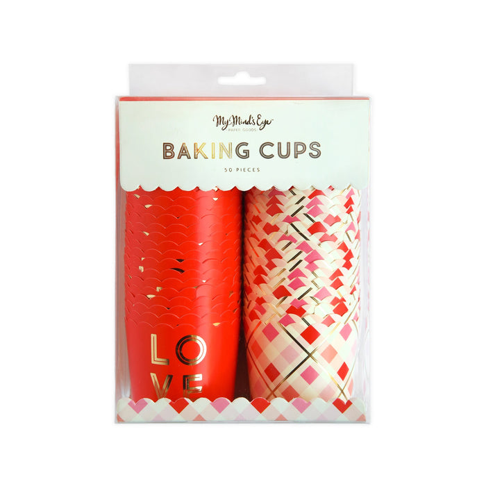 Gold Foiled Love/Diagonal Plaid Food Cups