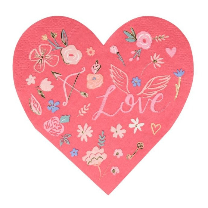 Add a lovely, colorful touch to your table setting with these beautiful heart-shaped napkins. They feature wonderful illustrations relating to love, including flowers and cupid's bow. They are perfect for a Valentine's Day meal, or any special romantic celebration like anniversaries, engagements and weddings.