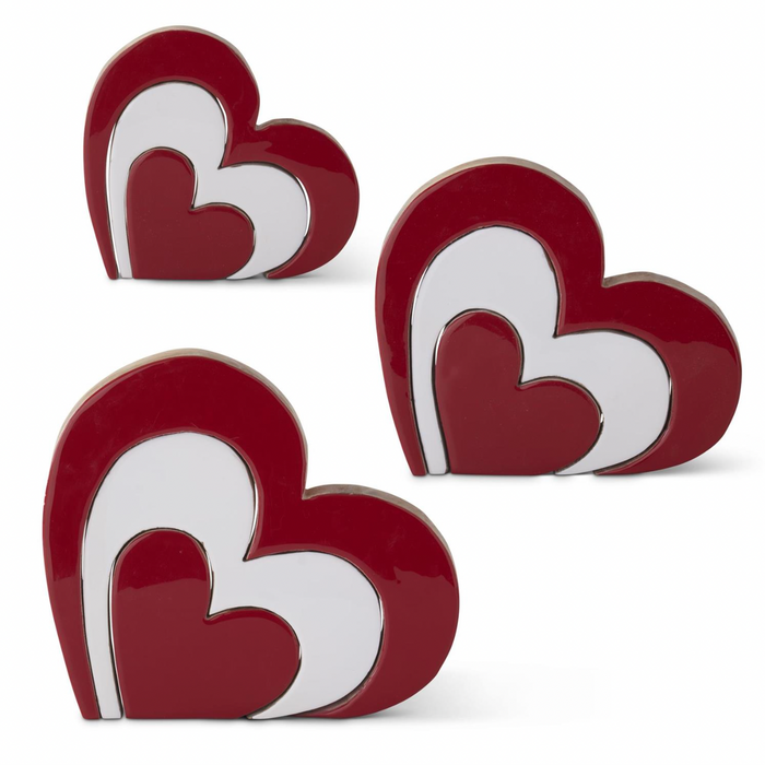 Create a whimsical and charming atmosphere with our Wood Red & White Enameled Heart Cutouts. Made from sturdy wood and accented with a vibrant red and white enamel, these cutouts are perfect for adding a touch of love and warmth to any room. A must-have for any heartfelt decor!