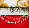 Count the 12 days of Christmas this year with this festive banner set. Featuring a beautifully illustrated icon for each of the 12 days, the icon banner in this set is sure to a merry touch to your home this Christmas season. Also included is a stitched word banner with the sentiment "12 days of Christmas" in glittery gold foil that adds a special touch to any holiday gathering this Christmas.