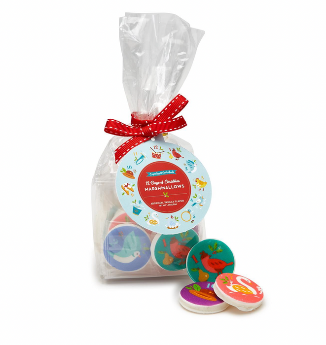Celebrate the 12 days of Christmas with this yummy gift bag! Featuring 12 different vanilla flavored marshmallows, everyone will look forward to opening a new candy each day. Create 12 days of Christmas inspired dessert board using these as festive cupcakes toppers. Add to a hot cocoa for an extra sweet treat. Use in advent calendars to make the spirits bright!