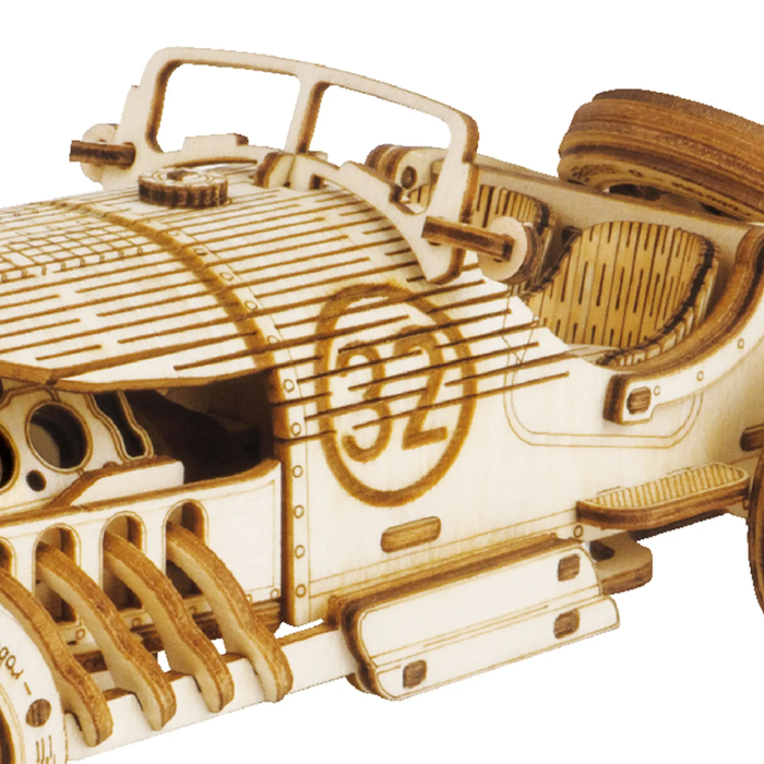 V8 Grand Prix Car, DIY Laser-Cut 3D Wooden Puzzle, 1:16 Scale Model