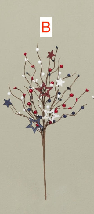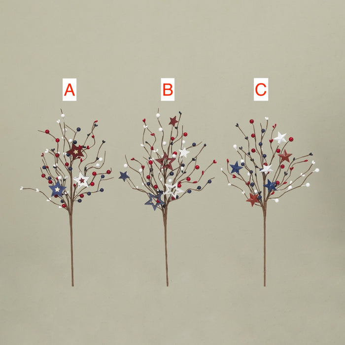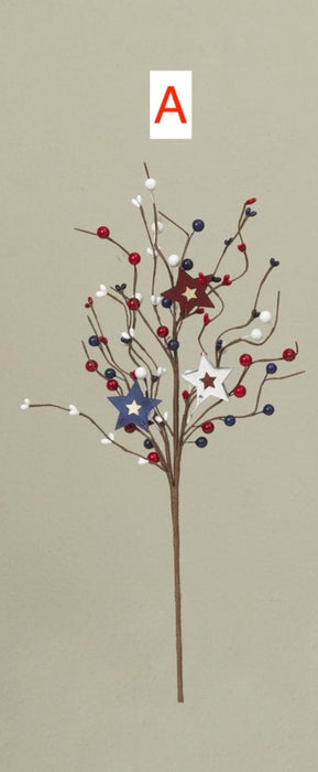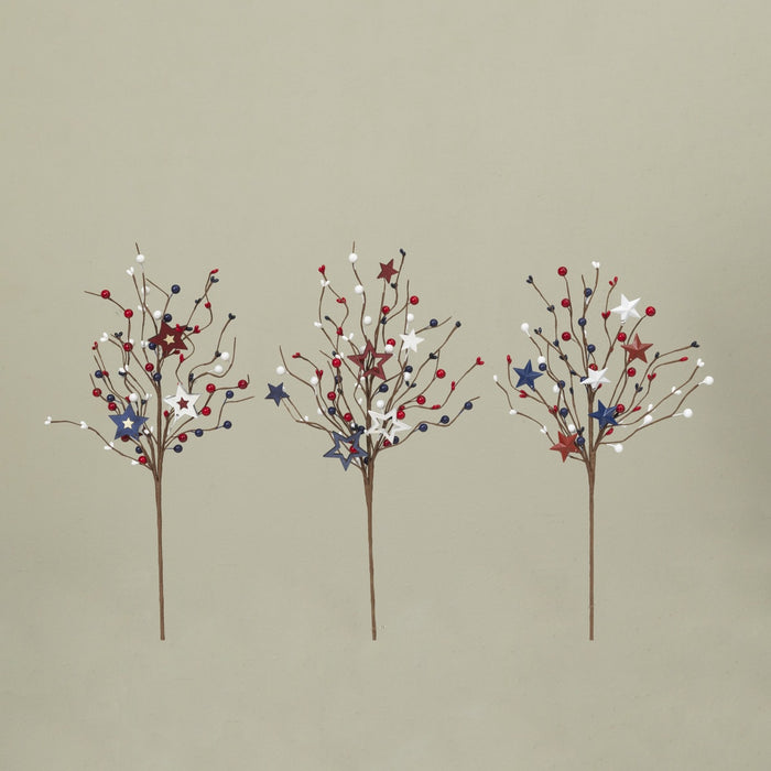 Unleash your patriotic spirit with these Americana Berry Pick with Stars! Add a touch of red, white, and blue to your home decorations for the 4th of July or any other patriotic occasion. Express your love for your country with this beautiful piece of americana decor.
