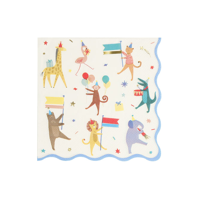Why have plain napkins when you can have a parade of animals to delight your party guests? These statement scalloped napkins will instantly decorate your table, perfect for a baby shower or birthday party.