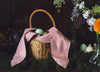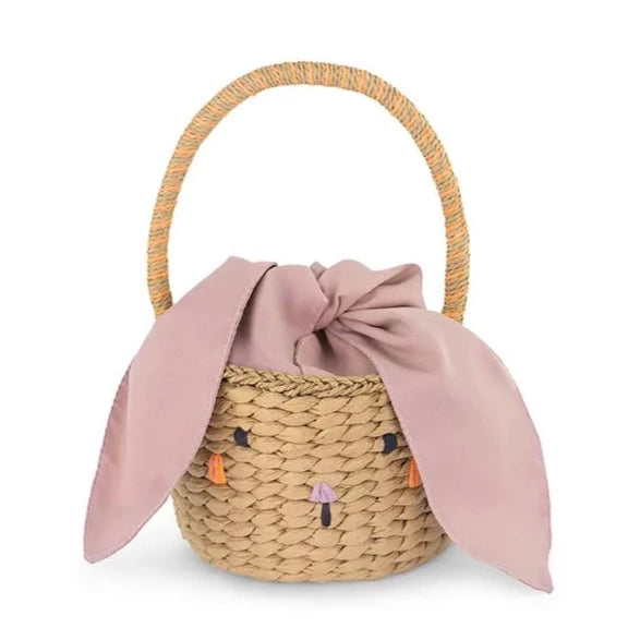 Our basket bunny with pink fabric ears is a need for your easter celebration.