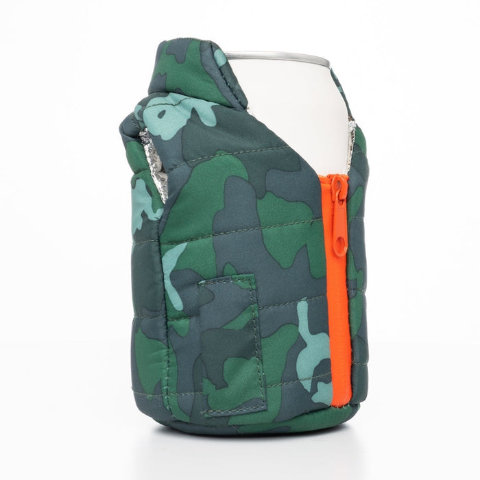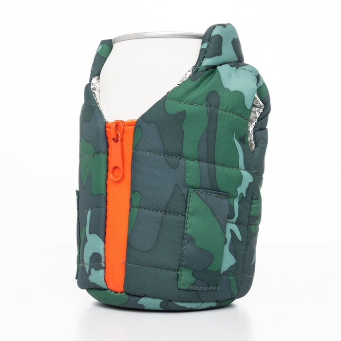 Designed to be your can's best friend but does not discriminate against bottles. With two layers of thermal insulation to keep your can cold and hands dry. The beverage vest keeps your drink's insides insulated but leaves it's imaginary arms free for work and play.
