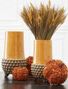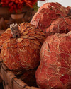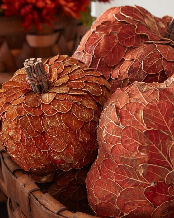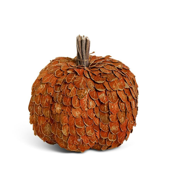 Orange and Gold Leaf Pumpkin with Twig Stem- 7.5"