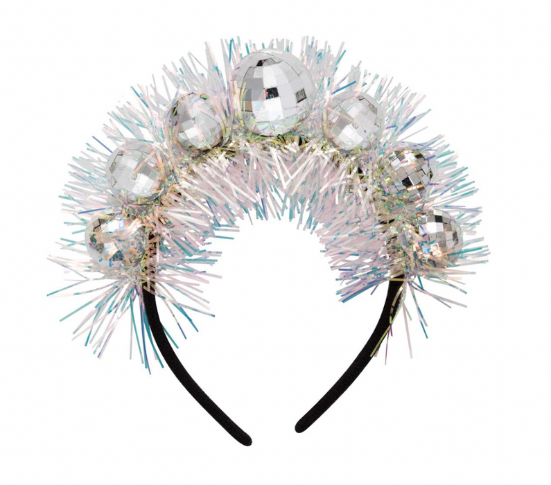 Turn any party into a disco with our Disco Ball Foil Fringe Headband! Featuring a sparkly disco ball design and fun fringe, this headband will add a touch of glamour to your outfit. Perfect for music festivals, costume parties, or just a night out with friends. Get ready to shine and dance the night away!