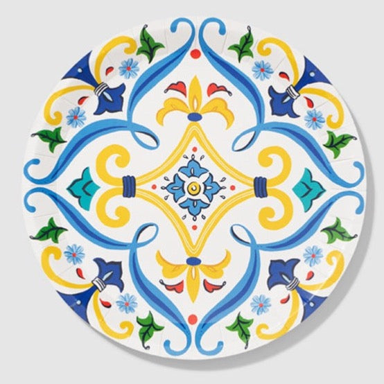 ins are inspired by summers on the Italian Coast, with blue and yellow Mediterranean tile design. Set these small plates out for guests to have that special dessert at your celebration or place them near the dessert table for an elegant look.