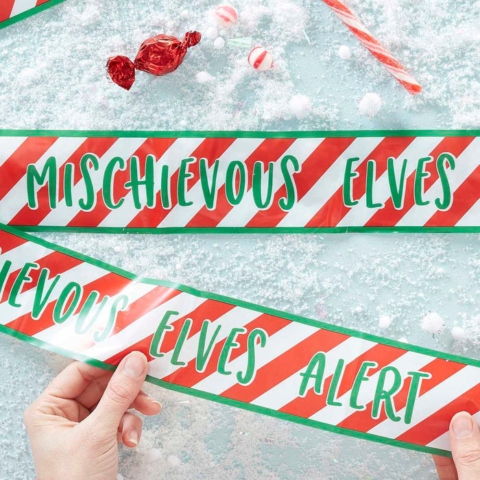 Give the whole family a fun experience, by decorating the "Mischievous Elves Alert" caution tape across walls, doors and furniture