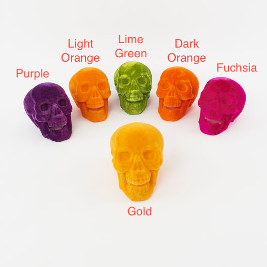 Add some color to your Halloween or Day of the Dead home decor with these colorful flocked skulls!
