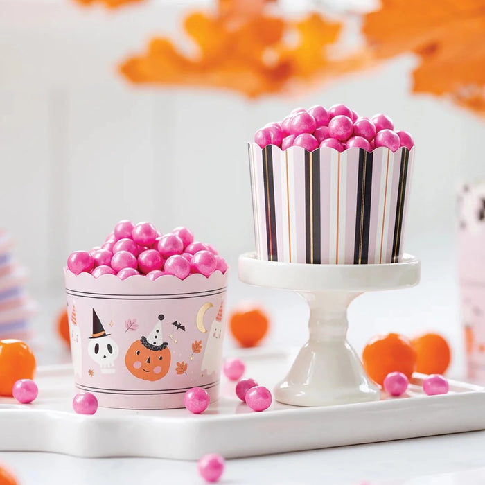 brand new baking cups are perfect for baking cupcakes right in the oven. But don't limit yourself, there are so many great uses for them: add candy and wrap in cellophane for a neighbor gift or party favor, cut up veggies and add dip for the perfect hors d'oeuvres at a party, bake mini quiche, or fill with fun snacks! There are so many options with these adorable cups!