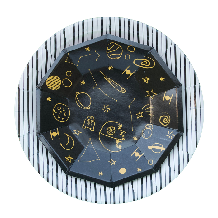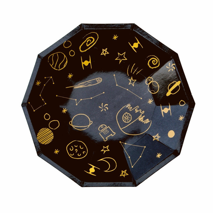 Featuring yellow and dark colors, the Galaxias plates are inspired on space adventures and will take your decoration to another dimension!