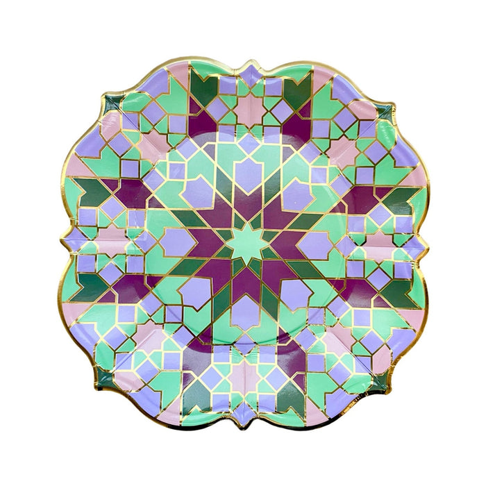 Includes 8 (9") paper lunch plates with gold foil effect.