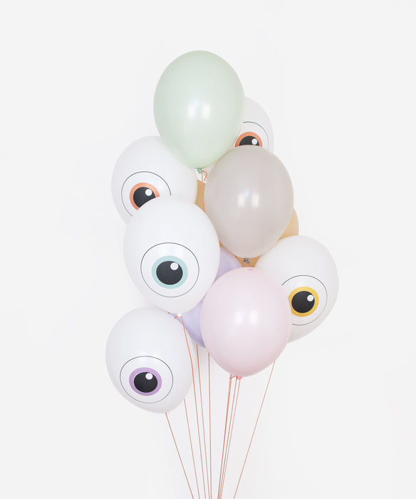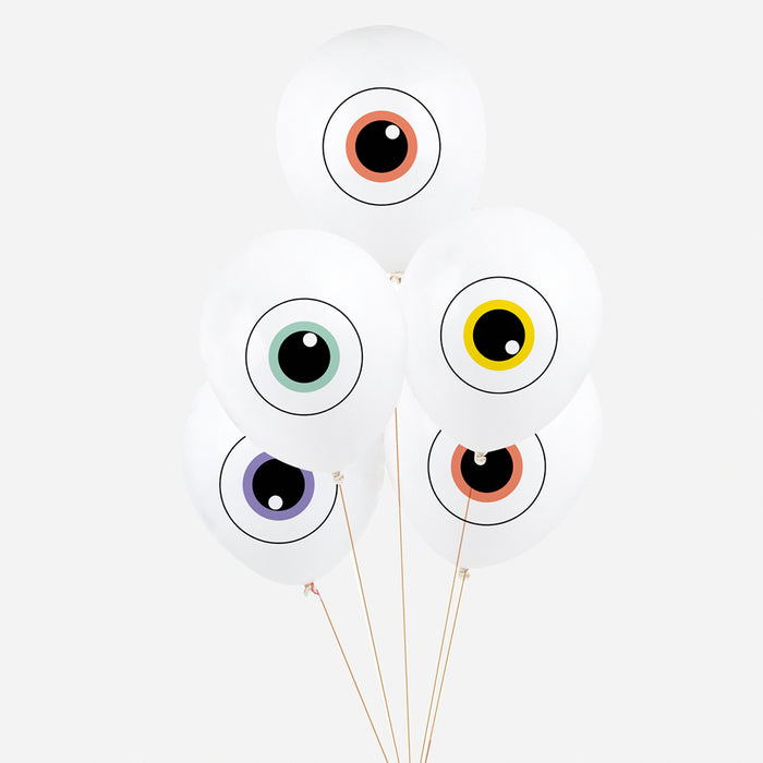 Boooooooh! It's Halloween and this set of creepy eyeball printed balloons make for the perfect decoration to your halloween bash or trick or treat table. 5 balloons covered with giant eyes! You can use them as they come or mix them with other solid colored balloons. There are a thousand ways to use them! Arched balloons to hang on the wall or above a buffet table; in a cluster with helium or simply on the ground for a balloon bed. The possibilities are endless! Like they say "somebody is always watching you."