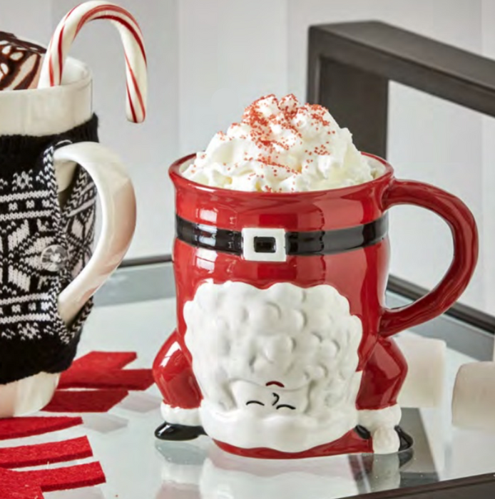 Get extra cozy with this hand stand santa mug! Features a fun sculpted design and hand-painted details of santa upside down! Showcase your individual style and personality while enjoying your favorite drinks like coffee, tea and hot cocoa! It is also a great Christmas gift or stocking stuffer.
