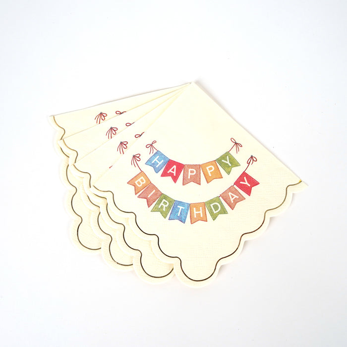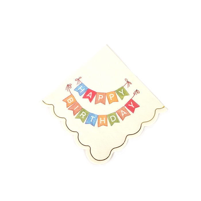 Mark your special day with this beautiful Happy Birthday Garland beverage napkin! The light colors and foil touch create a cheerful atmoshpere, while the scalloped edging adds a touch of elegance. All