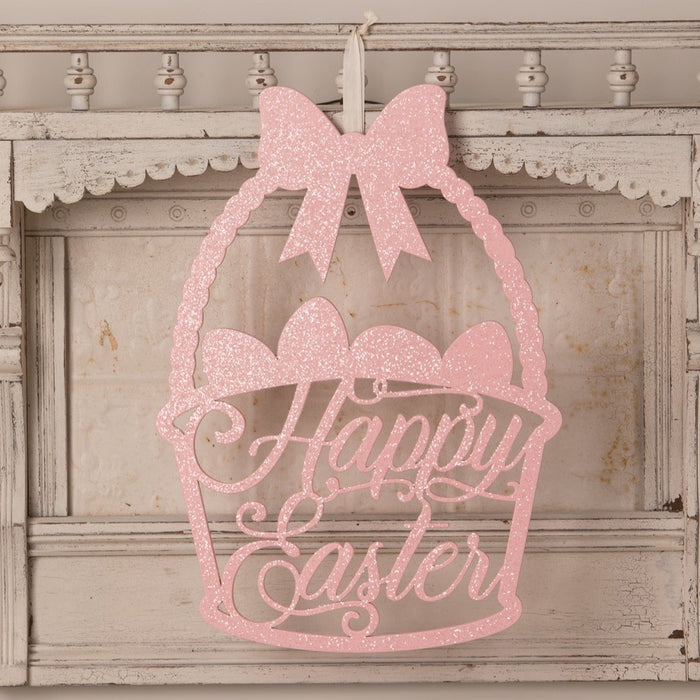 A great sign for your door, window, wall, or wreath. Welcome in the season with this pink glittered Easter basket sign.