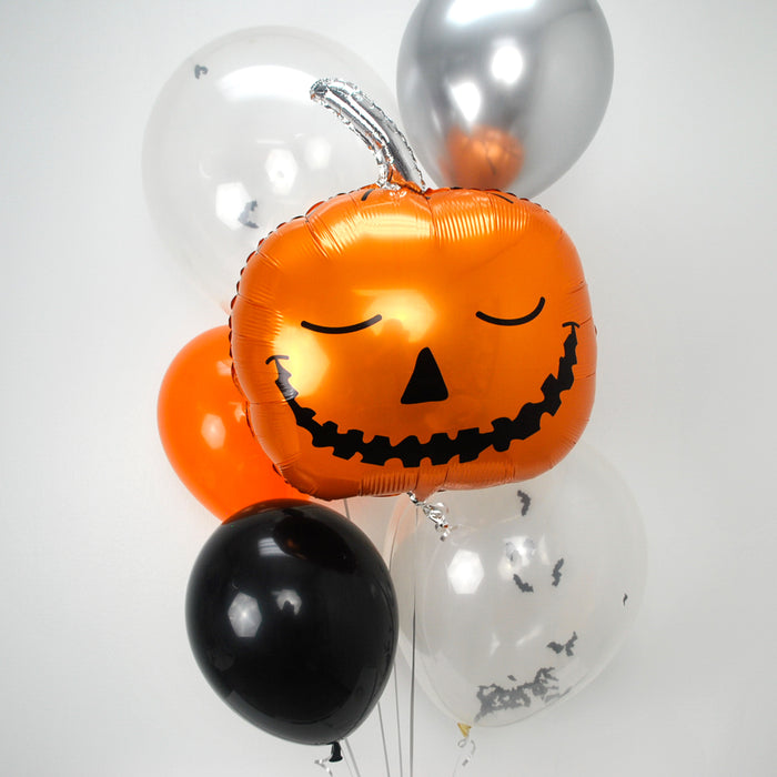 Includes 1 foil balloon, 3 solid colored latex balloons and 2 clear, pre-filled with bat confetti, latex balloons.