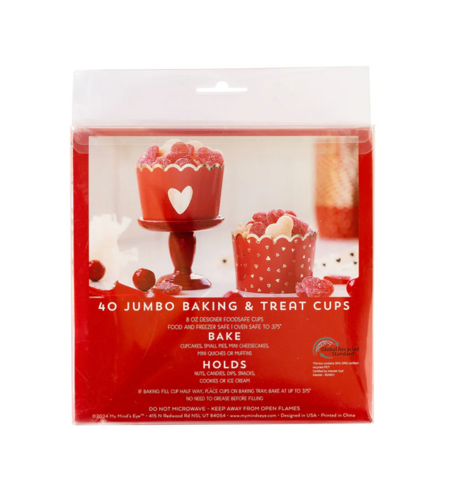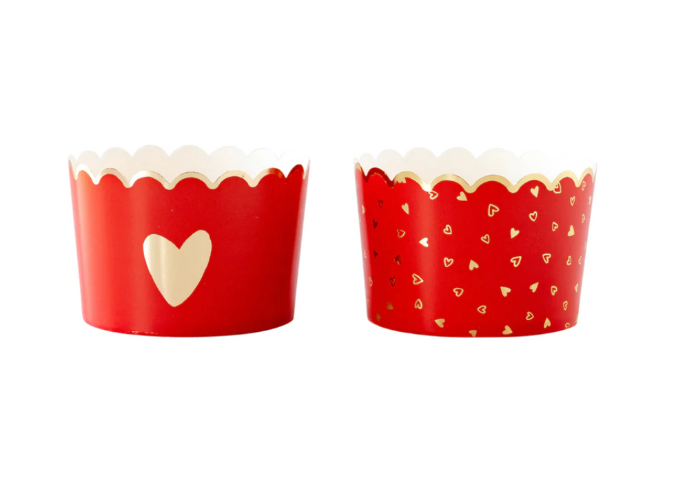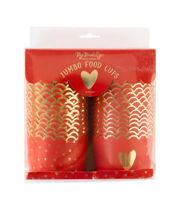These JUMBO Gold Foil Centered Heart Baking/Food Cups create a perfect Valentine's Day vibe with their big, bold red gold foil hearts. These jumbo baking cups are perfect for any romantic occasion!
