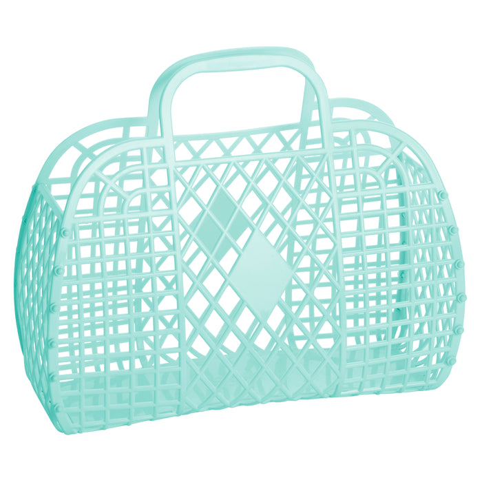Sun Jellies’ original classic jelly bag, famous in Europe and America. Ideal for summer the large Retro Basket will hold all your daytime essentials – très chic and practical! It’s also a great size for carrying groceries, a knitting project or your kid’s beach toys. With ergonomic handles for comfy carrying it is shipped flat for easy assembly at home and can be gently undone by pushing the buttons back through. The perfect accessory for your holiday suitcase!