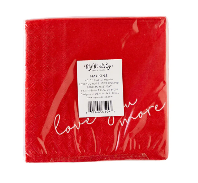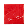 Discover your inner romantic with this heart-filled, red napkin that declares "Love You More" with flair. Add a special touch to any gathering with this unique napkin that's sure to be the toast of the town!