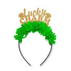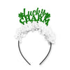All crown designs vary in height due to the different sayings, but most crowns are 6 inches wide, and anywhere from 2- 4 inches tall. The sayings are cut out of heavyweight premium card stock, and the glitter card stock has minimal to no glitter shedding. The plastic headbands are black and flexible, and fit almost every head whether child or adult. The fringe is made out of colorful fluffy tissue paper.