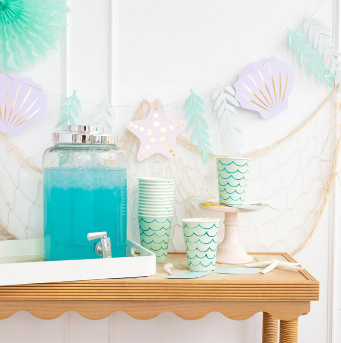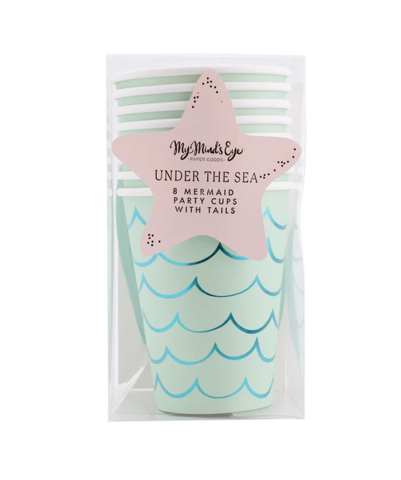 Get your party started with these Mermaid Tail Paper Party Cups! With an adhesive tail and aqua foil, these cups are perfect for any under the sea themed celebration. Embrace your inner mermaid and make a splash with these quirky and fun cups.